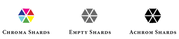 Inside the Hex are 6 Shards represented by triangles. Empty Shards appear grey. A Shard is full when it has some Chroma or Achrom in it. A Shard can be defined as either Chroma or Achrom: