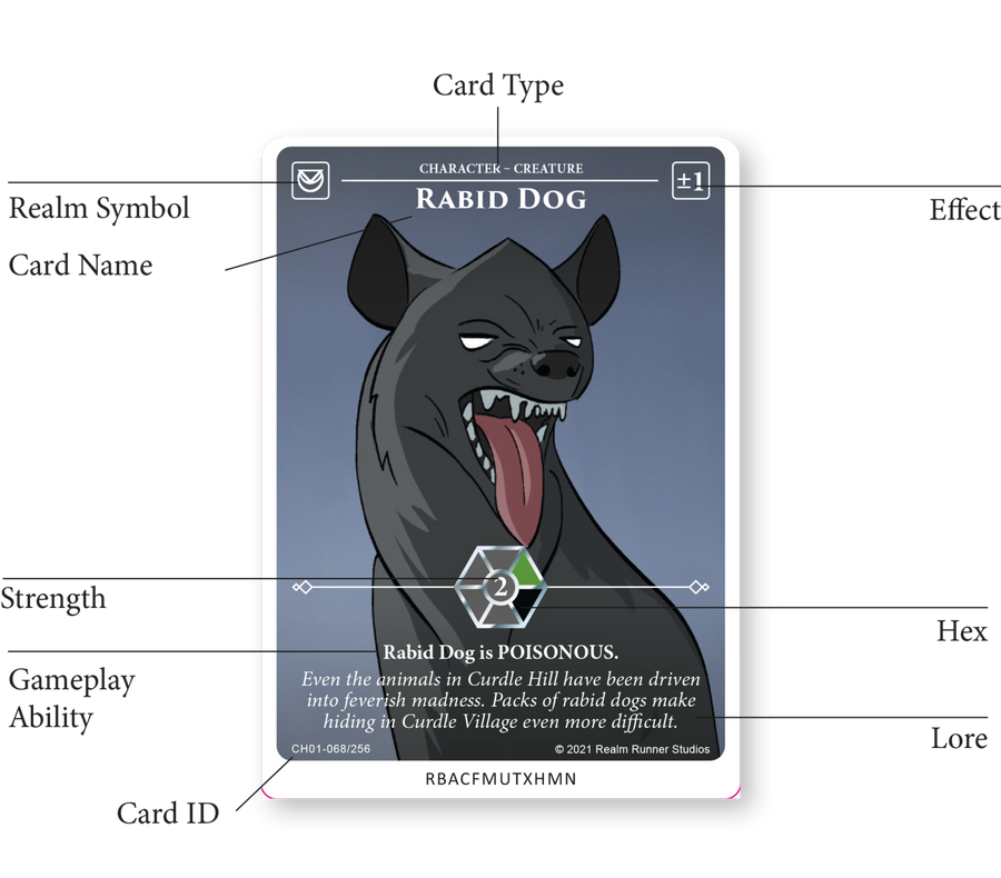 Card Name | The familiar name used for the card within the Realms. All cards have a name, and it represents the Character, Location, Object or Action in the best way.